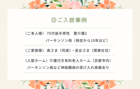 を決め手として、京都市内のサービス付き高齢者向け住宅へのご入居が決まりました。