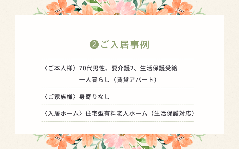 ご家族に頼りづらいおひとり暮らしの方も、区役所との連携で生活保護を受給しながら安心して入居していただけた事例